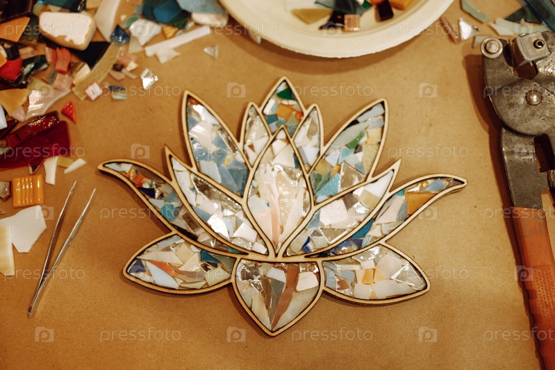 Мастер-класс мозаичного искусства. Крупный план мозаики в форме цветка лотоса