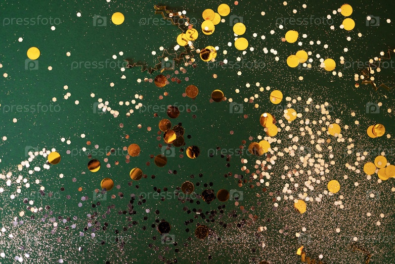 Расфокусированное зеленое и золотое праздничное боке. Абстрактный рождественский фон