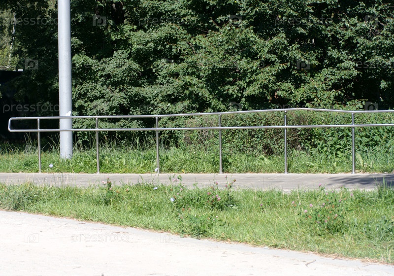 Металлический забор в парке в сухой солнечный летний день