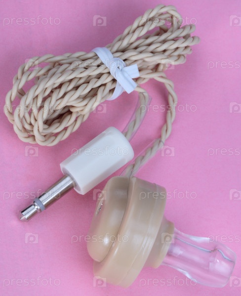 Пластиковые наушники на розовом фоне