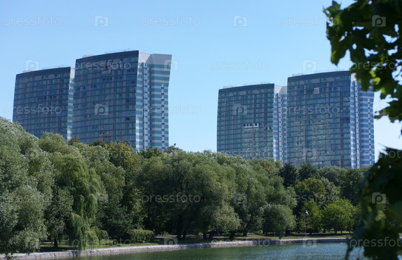 Край парусного офисного здания в сухой солнечный летний день