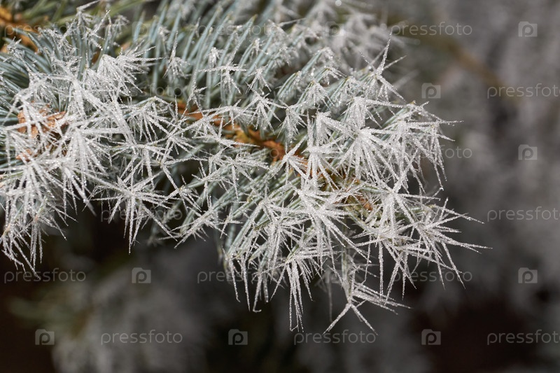 Голубая ель в мороз. Зимнее волшебство. После оттепели ударили морозы и деревья покрылись инеем