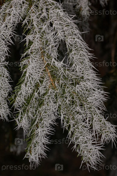Ель в мороз. Зимнее волшебство. После оттепели ударили морозы и деревья покрылись инеем