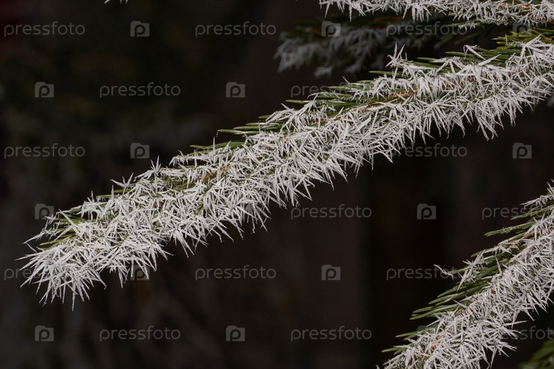 Ель в мороз. Зимнее волшебство. После оттепели ударили морозы и деревья покрылись инеем