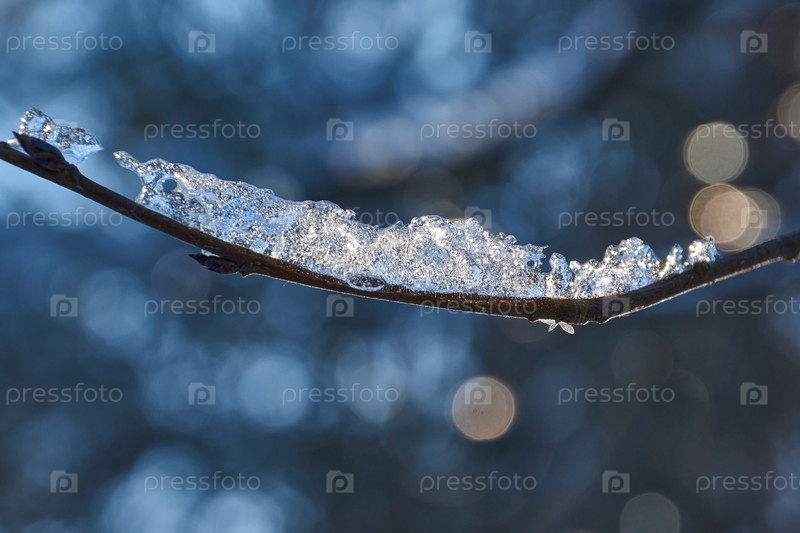 Зимнее волшебство. Кусочек льда на ветке превращается в сверкающий бриллиант