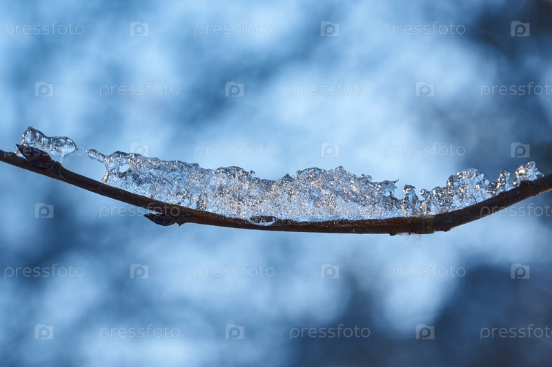 Зимнее волшебство. Кусочек льда на ветке превращается в сверкающий бриллиант