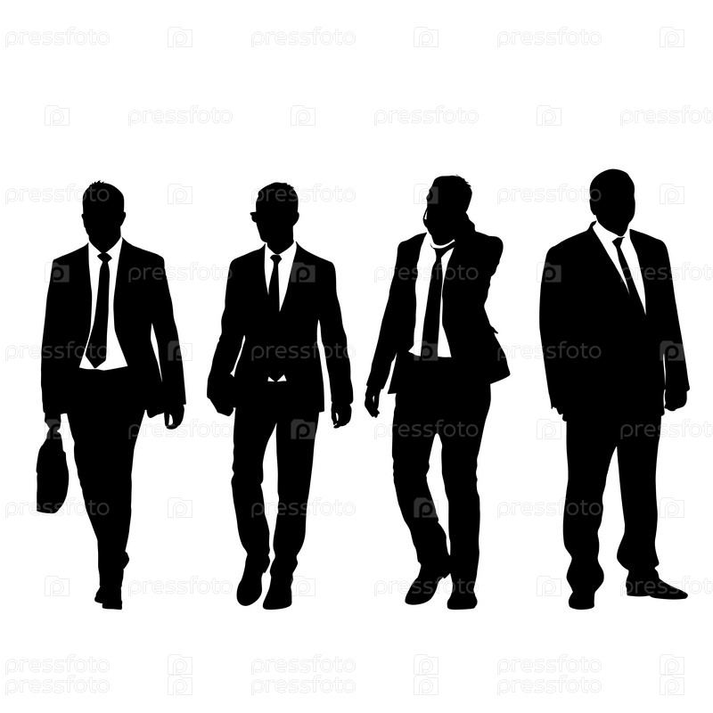 Установите силуэт бизнесмена в костюме с галстуком на белом фоне