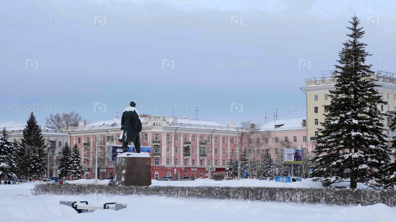 БАРНАУЛ - 21 ЯНВАРЯ центральная часть города памятника Ленину 21 января 2018 года в Барнауле, Россия, БАРНАУЛ - 21 ЯНВАРЯ центральная часть города памятника Ленину 21 января 2018 года в Барнауле, Россия