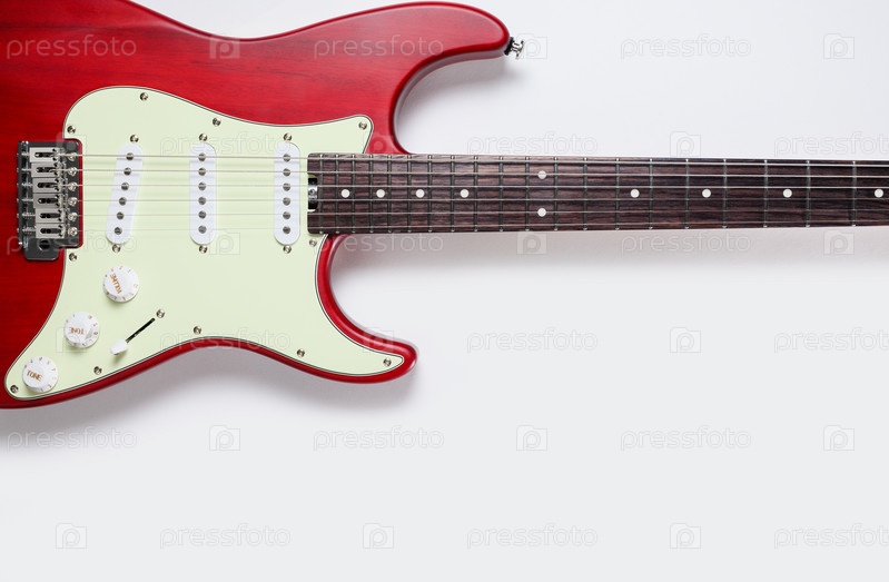 Гитара на светлом фоне. Свободное место внизу. Электрогитара крупным планом