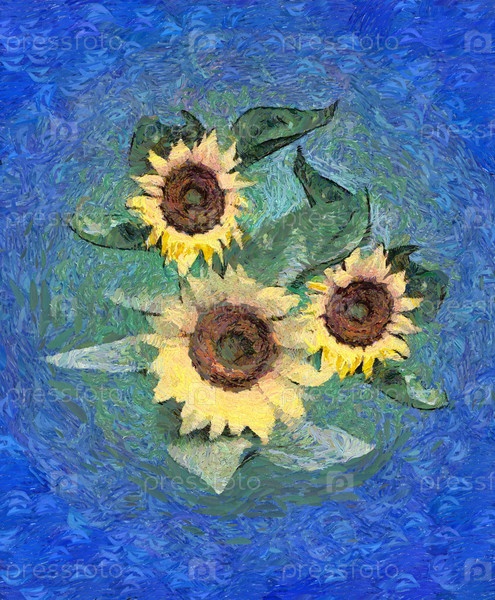 Подсолнухи на синей цифровой живописи