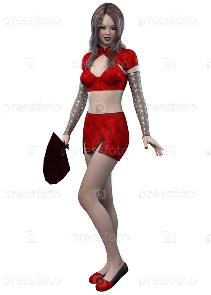 3D Азиатская девушка в красном наряде