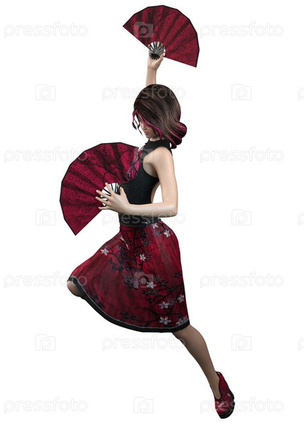 3D азиатская девушка с двумя поклонниками