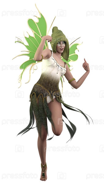 3D-фея с зелеными крыльями
