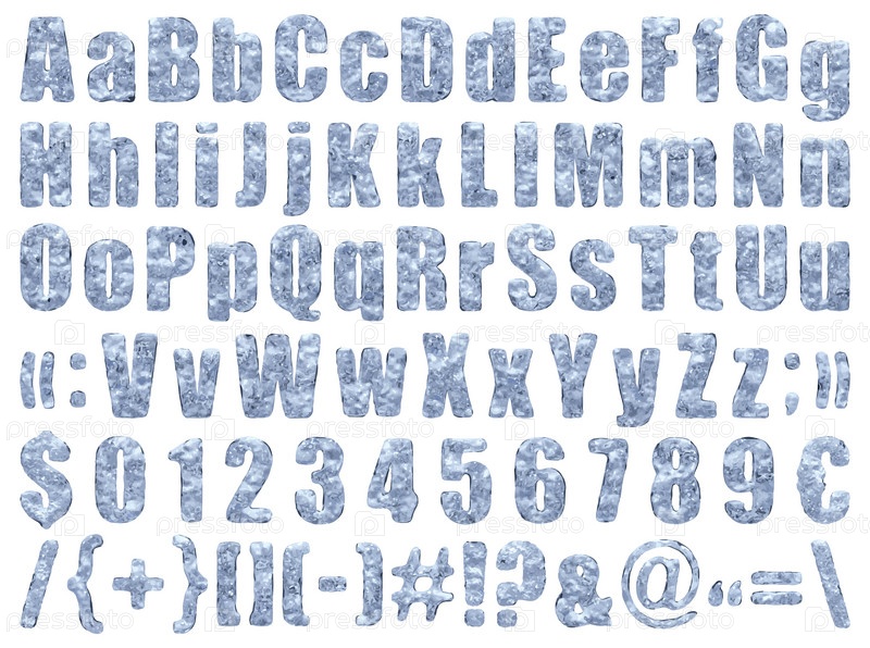 Ледяные шапки английского алфавита на белом фоне