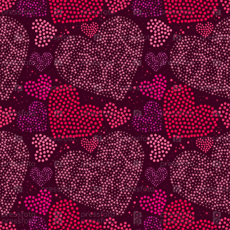 Сверкающие сердца бесшовный узор из мелких деталей, точек и звездочек