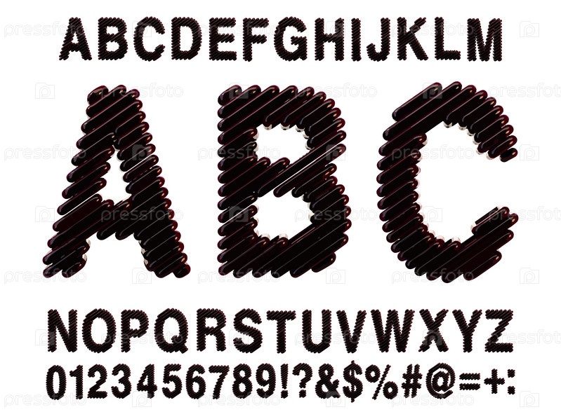 Параметрические диагональные цилиндры. Черный глянцевый алфавит. Набор векторных букв