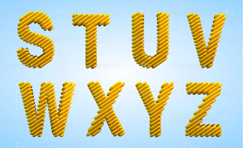 Параметрические диагональные цилиндры. Желтый глянцевый алфавит. Набор векторных букв