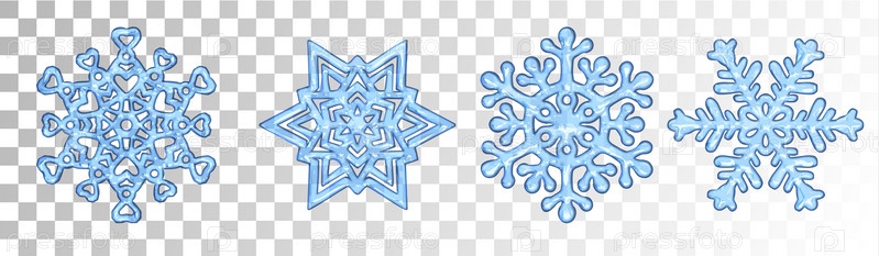 Набор векторных снежинок, декоративных снежных кристаллов, на прозрачном фоне