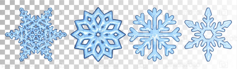 Набор векторных снежинок, декоративных снежных кристаллов, на прозрачном фоне