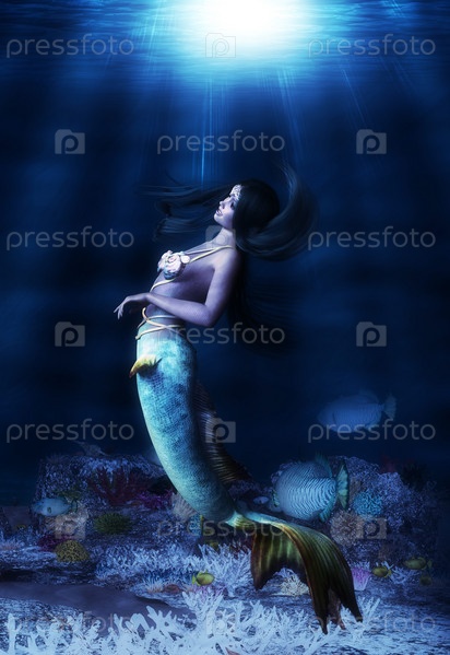3D Подводный коралловый риф и русалка