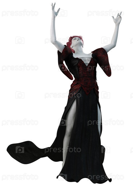3D-ведьма в черно-красном наряде