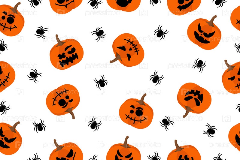 Счастливого Хэллоуина с тыквами и пауком. Бесшовный узор. Векторная иллюстрация