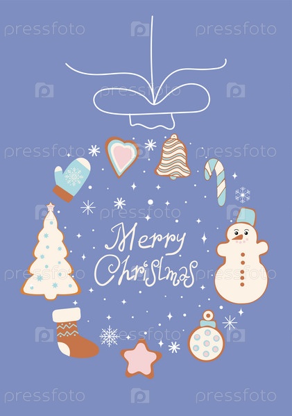 Открытка с пряниками и надписью «С Рождеством». Векторная графика