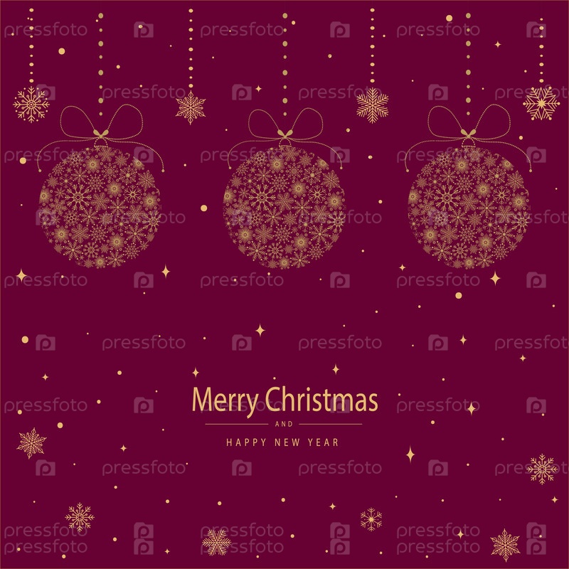 Праздничная рождественская открытка с елочными шарами из снежинок. Открытка с Рождеством и Новым годом