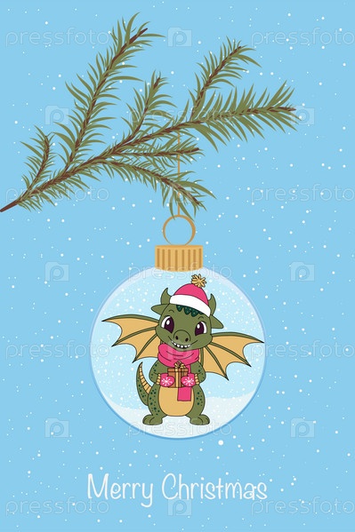 Открытка с Новым 2024 годом. Год Дракона. Зодиакальный персонаж мультфильма