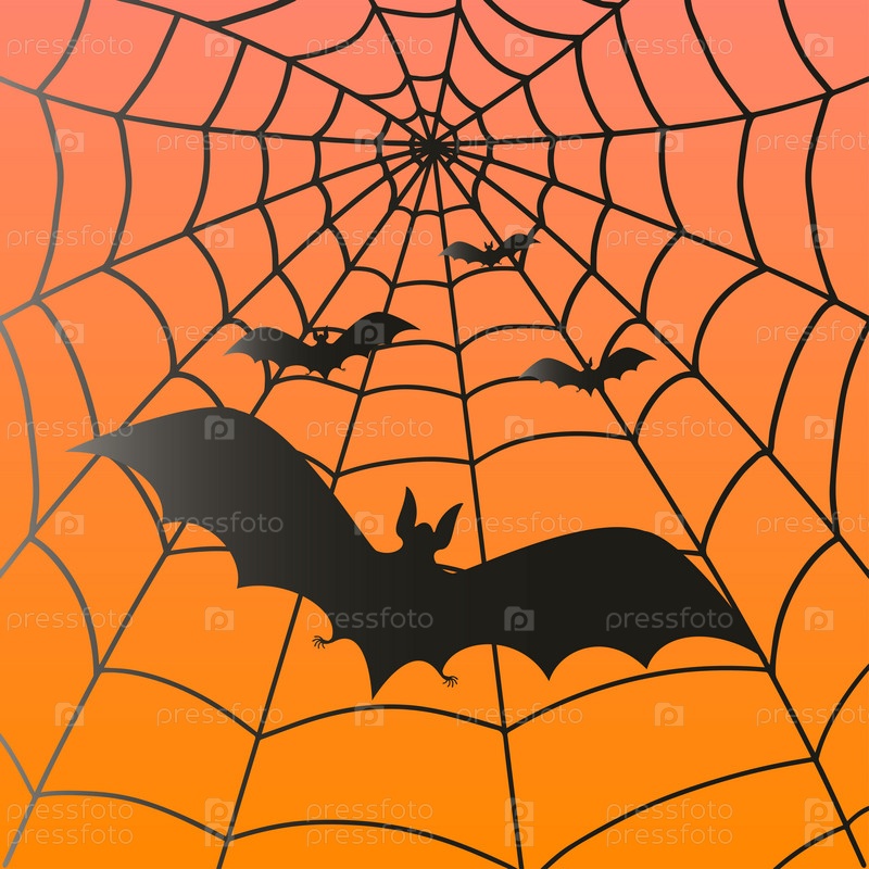 Хэллоуинская паутина и летучие мыши. Ручная паутина. Векторная иллюстрация