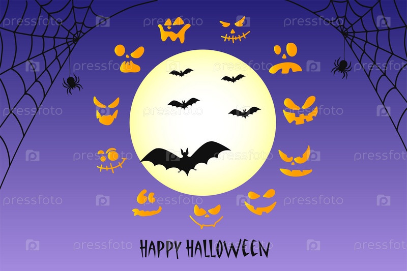 Счастливый баннер Хэллоуина или приглашение на вечеринку с летучими мышами, призраками и паутиной. Векторная иллюстрация