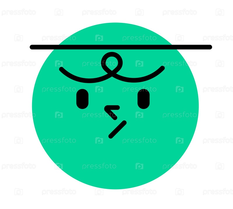Круглое лицо, выражающее эмоции. Сомневаясь и хмурясь
