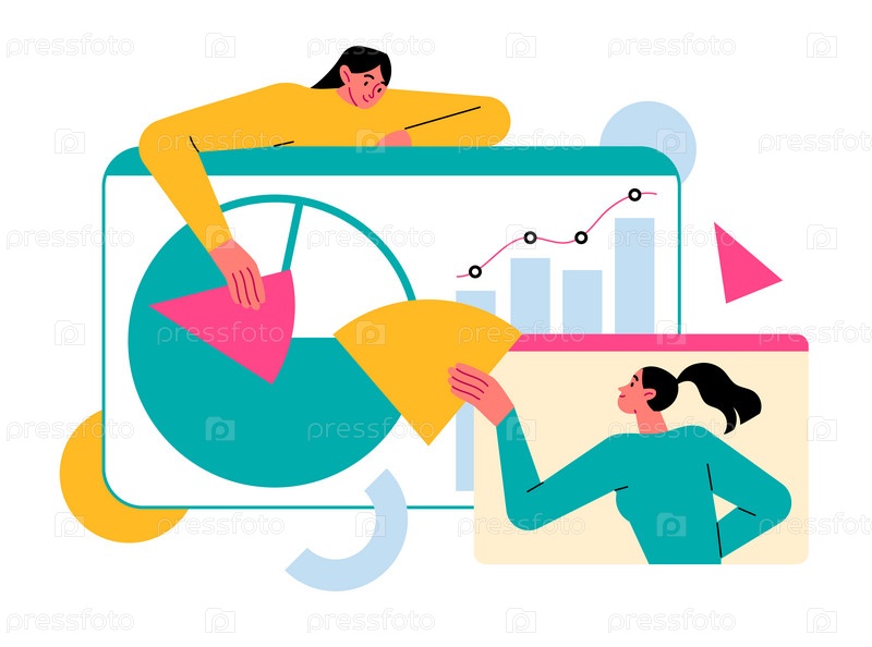 Люди работают с данными, составляют диаграмму