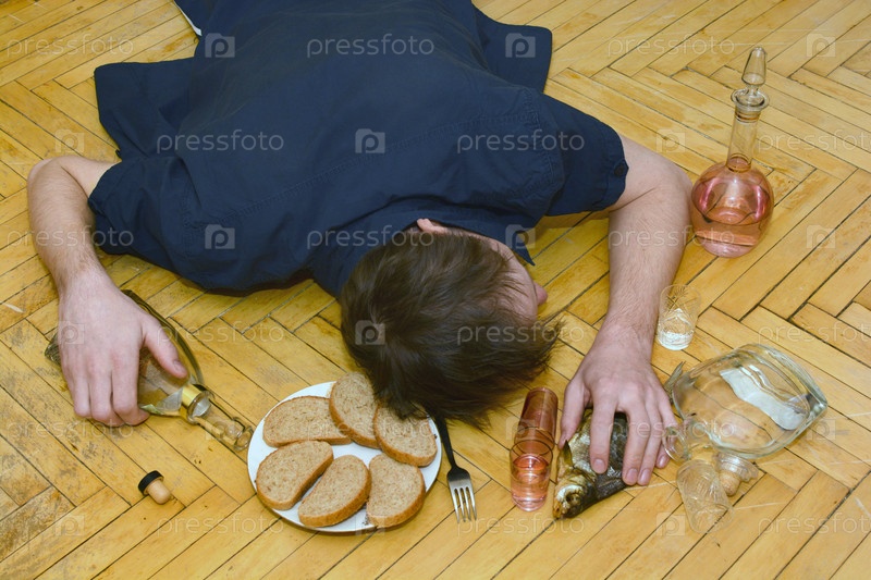 Пьяный мужчина лежит на полу