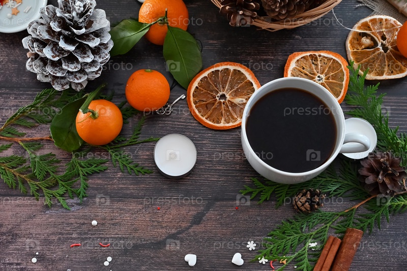 Новогодняя открытка с чашкой кофе