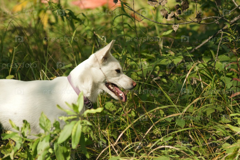 Белая собака в поле