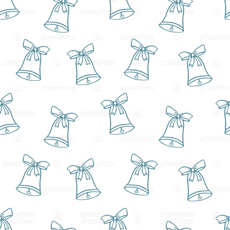 Бесшовный узор Рождественский колокольчик мультяшный векторная иллюстрация в стиле каракулей. Векторные фоновые обои из мультяшных ручных рисунков с элементами символа Рождества