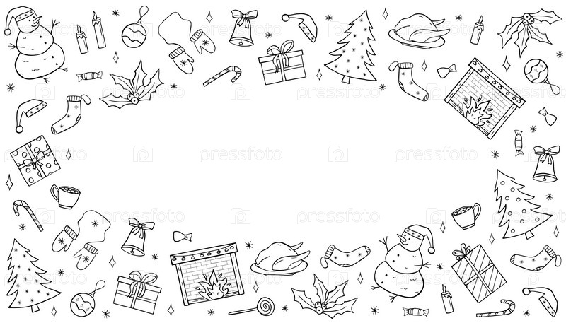 Рождественский и новогодний набор иконок-каракулей. Векторная иллюстрация мультяшных ручных рисунков символа Рождества