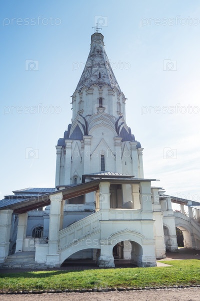 Москва, Россия - 01 ОКТЯБРЯ 2020 г.: Музей-заповедник "Коломенское". Осенний парк, Вознесенская церковь, наследие ЮНЕСКО