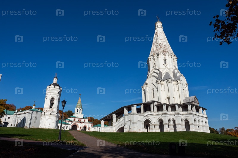 Москва, Россия - 01 ОКТЯБРЯ 2020 г.: Музей-заповедник "Коломенское". Осенний парк, Вознесенская церковь, наследие ЮНЕСКО