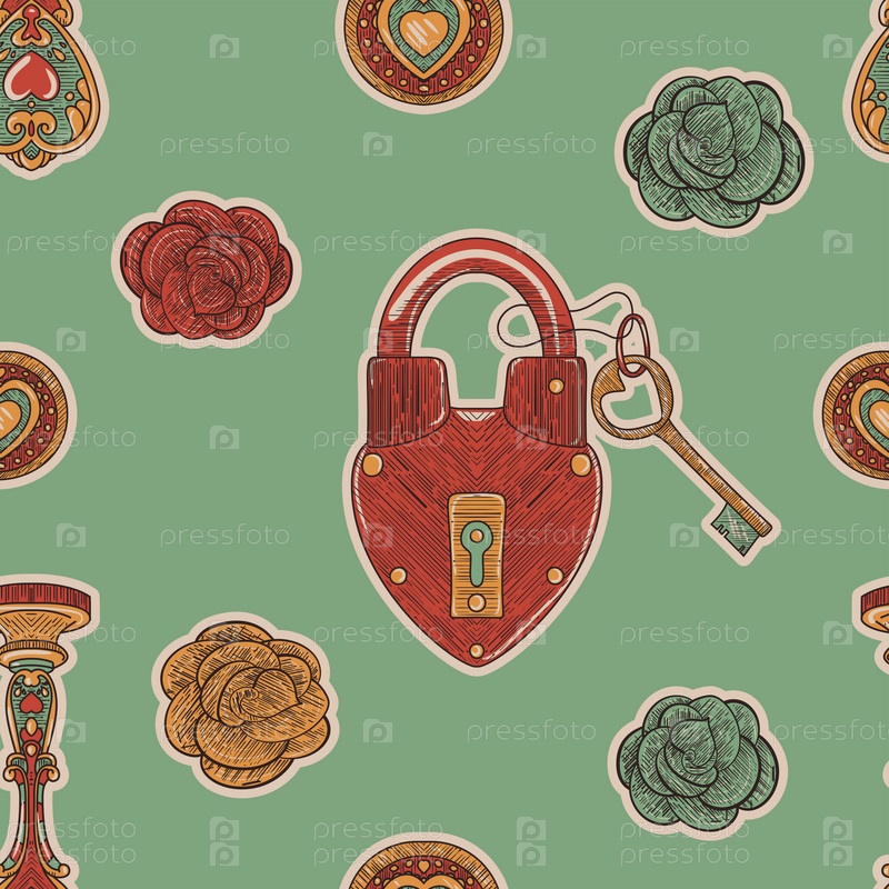 Зеленый винтажный бесшовный узор ко Дню святого Валентина