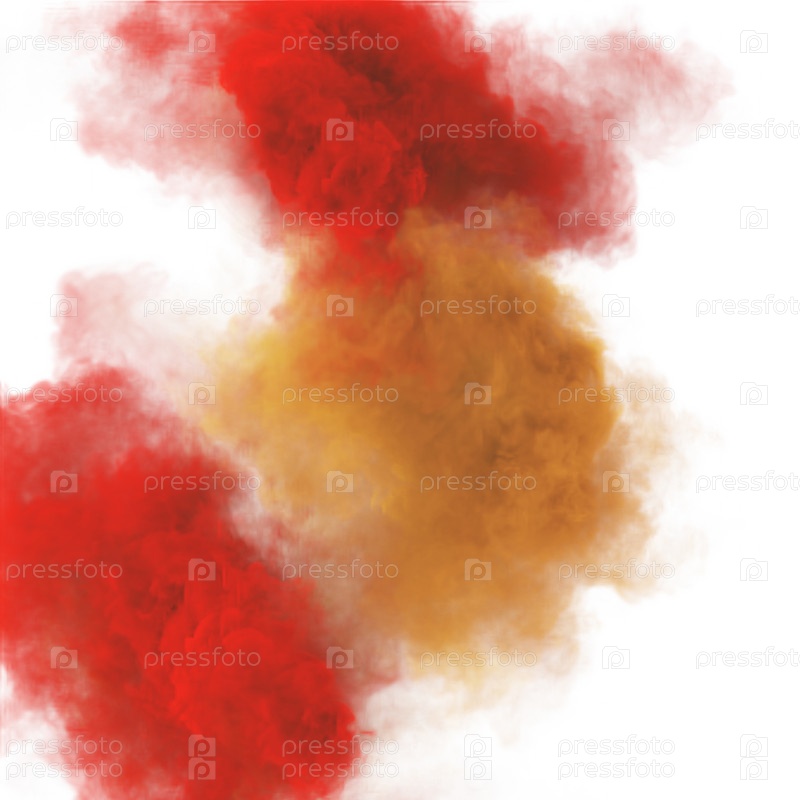 Красные и желтые клубы волшебного тумана и фантастической текстуры дыма