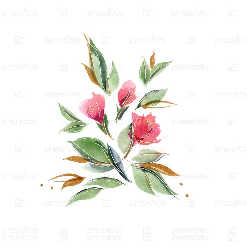 Цветочная композиция с нежными ароматными цветками и листьями розы. Весеннее настроение с акварельным букетом