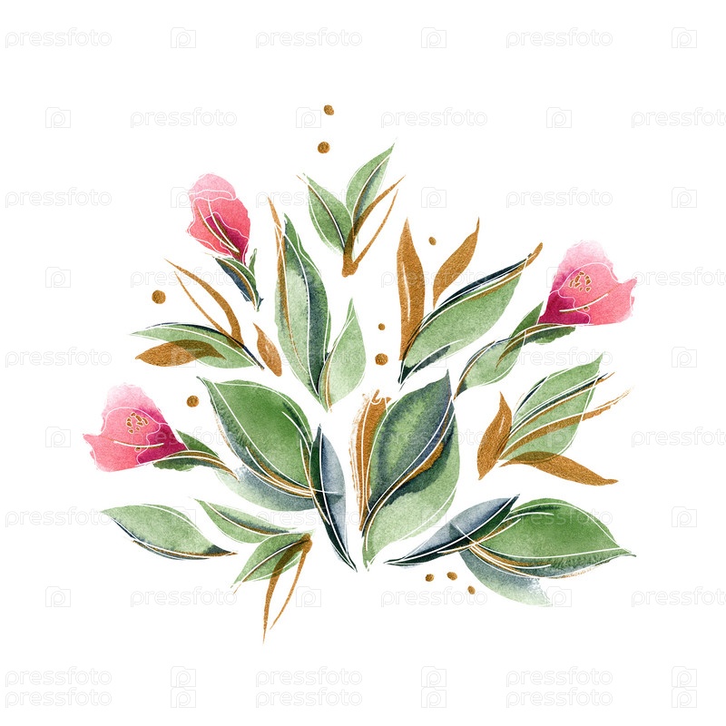 Цветочная композиция с нежными ароматными цветами и листьями роз