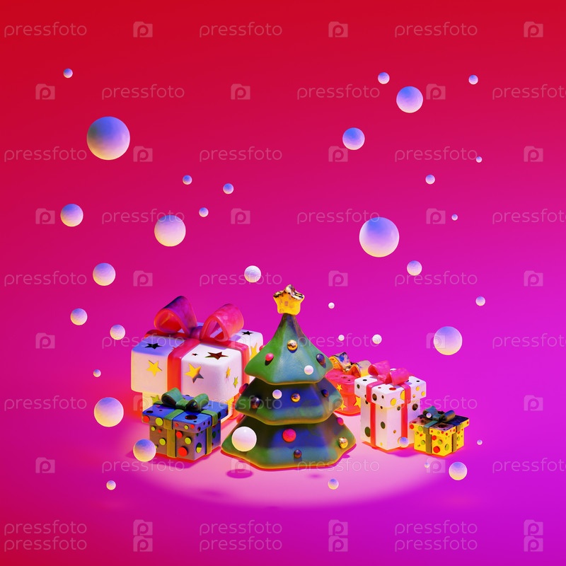Рождественская елка и подарочные коробки из глины