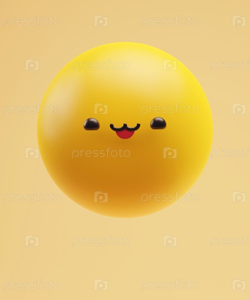 Радостный глупый смайлик со смешным кошачьим лицом каваи с полусферическими глазами
