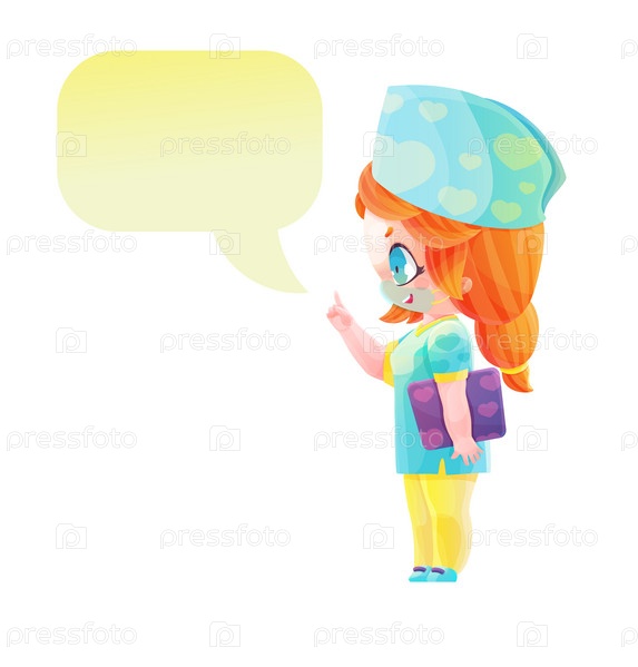 Симпатичный персонаж женщина-врач с текстовым шаром