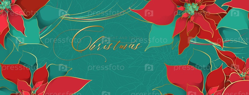 Рождественская зеленая шапка Пуансеттия в элегантном роскошном стиле. Красные и зеленые шелковые листья с золотой линией на зеленом фоне. Рождественский и новогодний декор для соцсетей