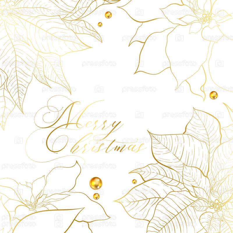 Рождественская бело-золотая квадратная рамка. Листья Пуансеттии с золотой линией и золотыми ягодами. Рождественская и новогодняя открытка в социальной сети