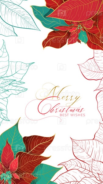 Рождественский баннер с поздравительными историями Пуансеттии и наилучшими пожеланиями
